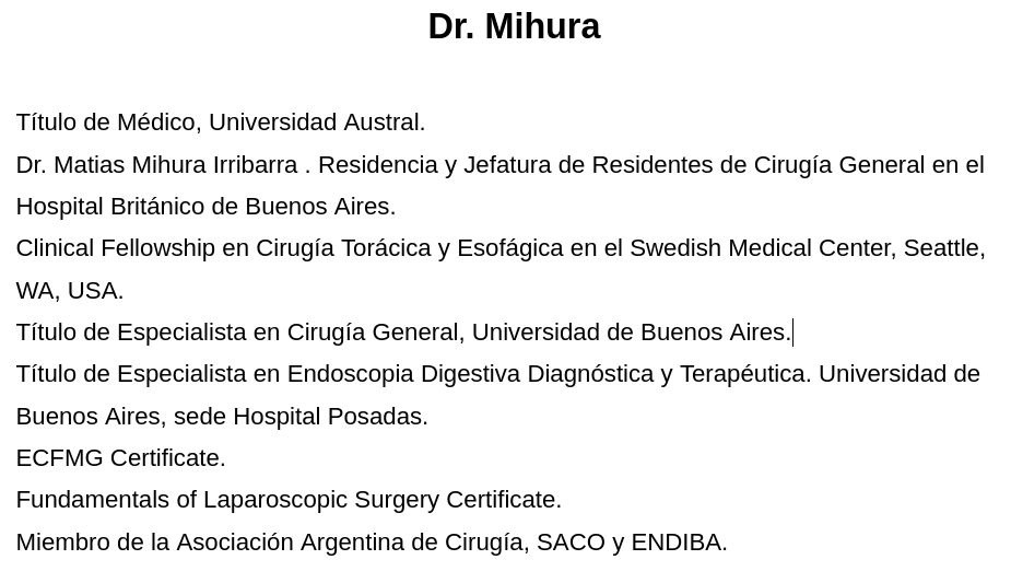 Medico. Especialista en Cirugía General.