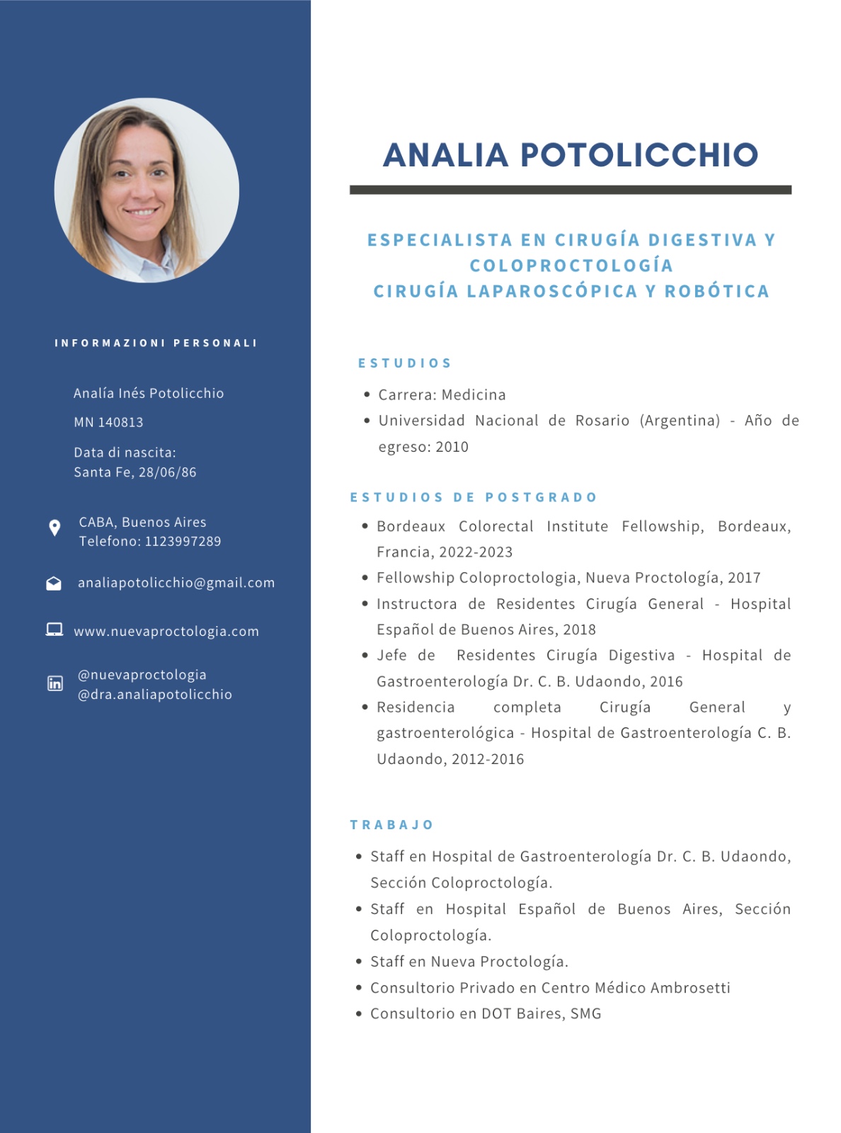 Especialista en cirugía digestiva y coloproctología, cirugía laparoscópica y robótica
